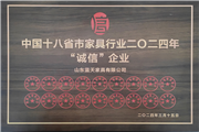 3月荣获中国十八省市家具行业“诚信企业”